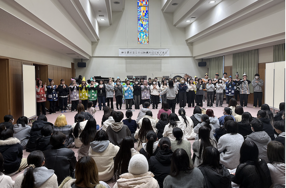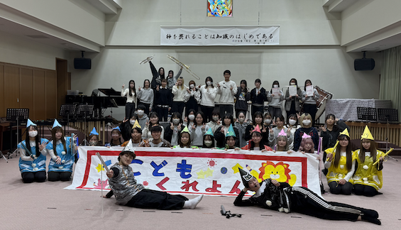 3年生幼稚園教諭・保育士コース「総合表現活動B」の発表が行われました。本授業では、器楽演奏や劇、歌、制作活動などを通して、絵本『くれよんのくろくん』を題材にしたオペレッタの発表に取り組みました。当日は約80名の観客にご来場いただき、多くの方に学生たちの成果をご覧いただくことができました。学生にとっては、1年間の学びの集大成となる発表の場となり、それぞれが表現することの楽しさや達成感を実感する機会となりました。