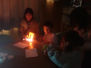 最後に全員でぼんぼりに明かりをつけました。素敵な空間が広がります。